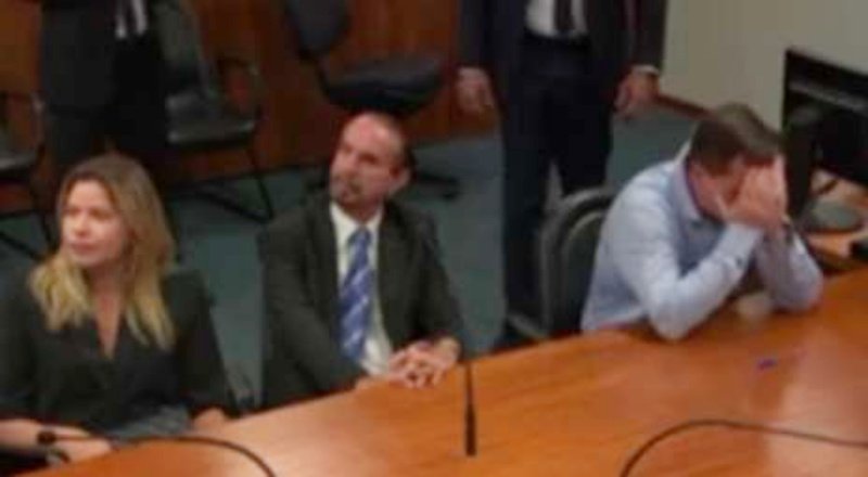 Em seguida, Cid leva as mãos à cabeça e deixa a sala acompanhado por seu advogado.